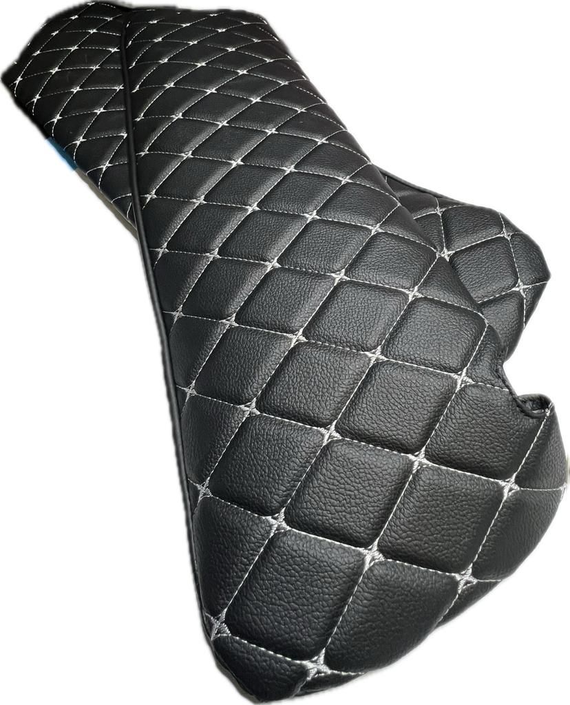 Чехлы выполнены в классическом черном цвете, который легко впишется в интерьер любого автомобиля. Белая нить добавляет изысканности и элегантности.