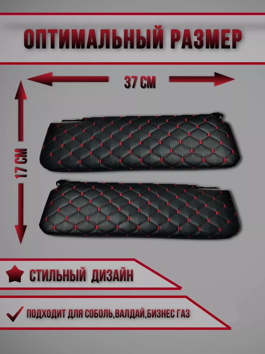 Благодаря красной нити, чехлы на козырьки гармонично сочетаются с интерьером вашего автомобиля, добавляя ему современный и стильный вид. В комплекте идут два чехла, которые крепятся на липучках.