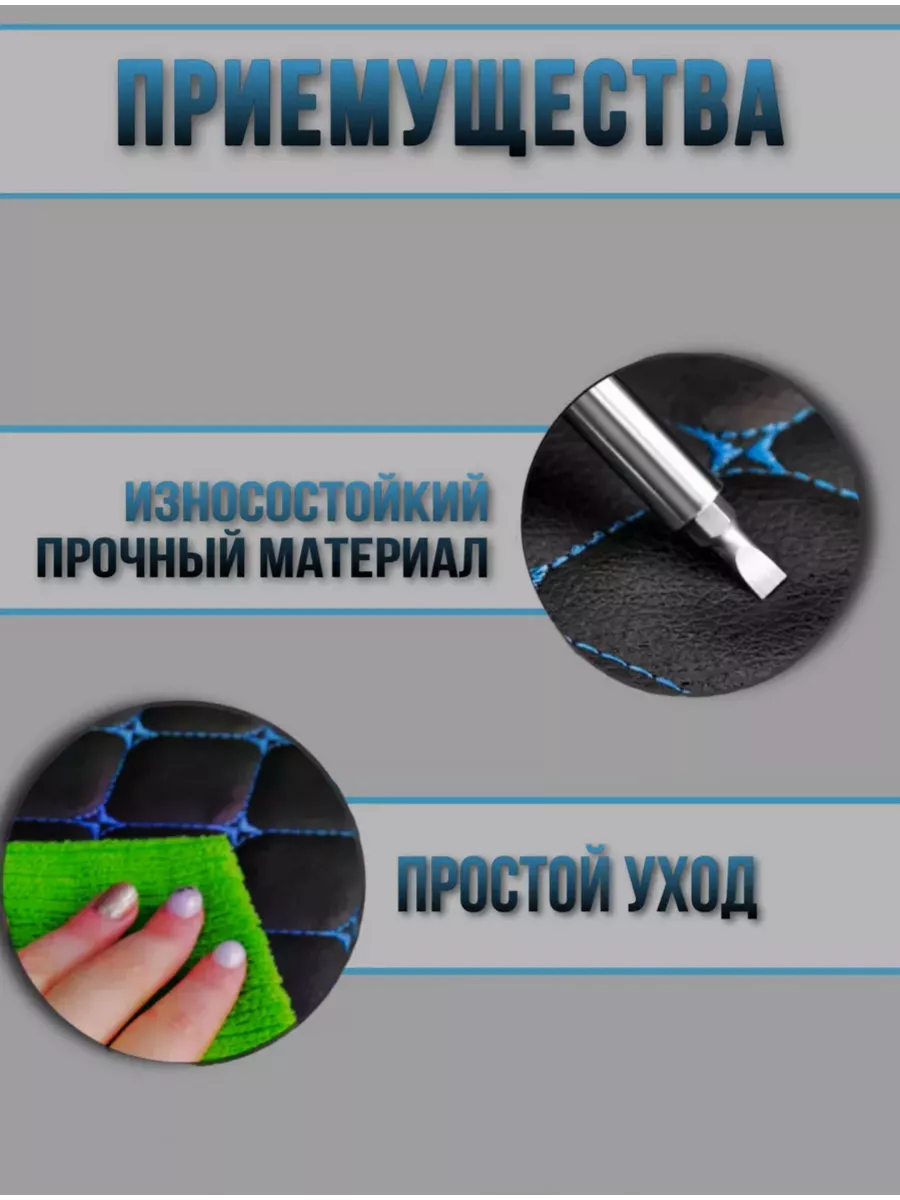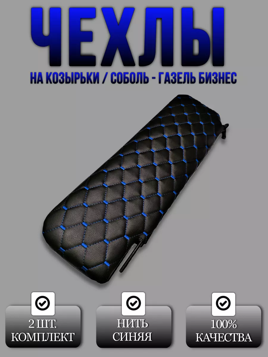 Благодаря синей нити, чехлы на козырьки гармонично сочетаются с интерьером вашего автомобиля, добавляя ему современный и стильный вид. В комплекте идут два чехла, которые крепятся на липучках.