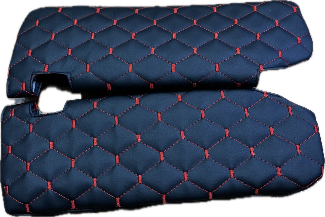 Чехлы на козырьки ЛАДА Ларгус, РЕНО Логан, Дастер, Сандеро (красная нить Рубин) - это уникальный аксессуар, который поможет вам защититься от сильного солнечного света и сохранить комфорт при вождении автомобиля. Этот чехол изготовлен из высококачественных материалов, таких как поролон, спанбонд и экокожа, что обеспечивает долгую службу и удобство использования.