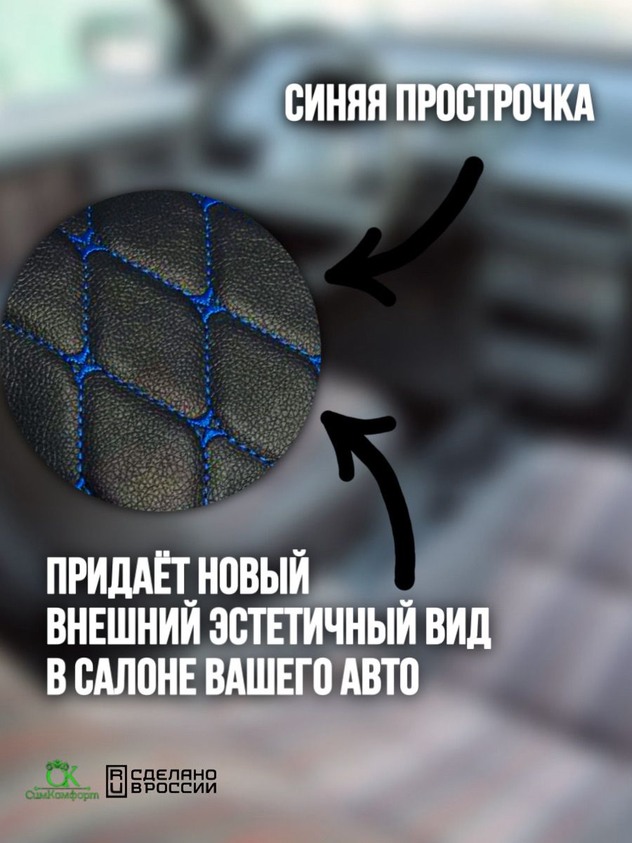 - Материал: Чехлы изготовлены из высококачественных материалов: поролона, спанбонда и экокожи, которые обеспечивают долговечность и комфорт при использовании.