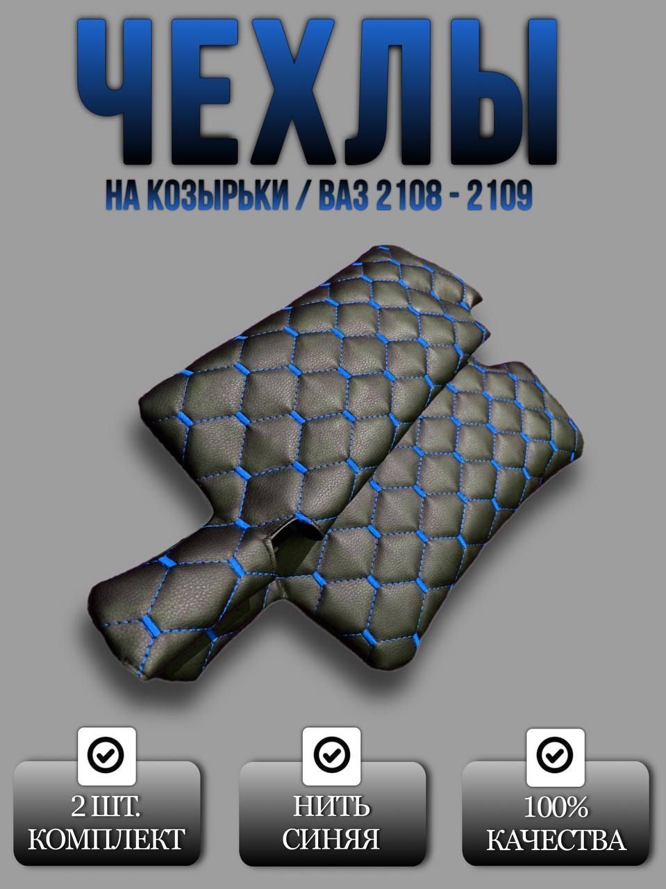 Дизайн чехлов выполнен с акцентом на стиль и функциональность. Синяя нить «Рубин» добавляет изюминку и гармонично смотрится в интерьере вашего авто. Установка чехлов проста и не требует особых навыков, что позволяет вам легко обновить обивку козырьков без помощи специалистов.