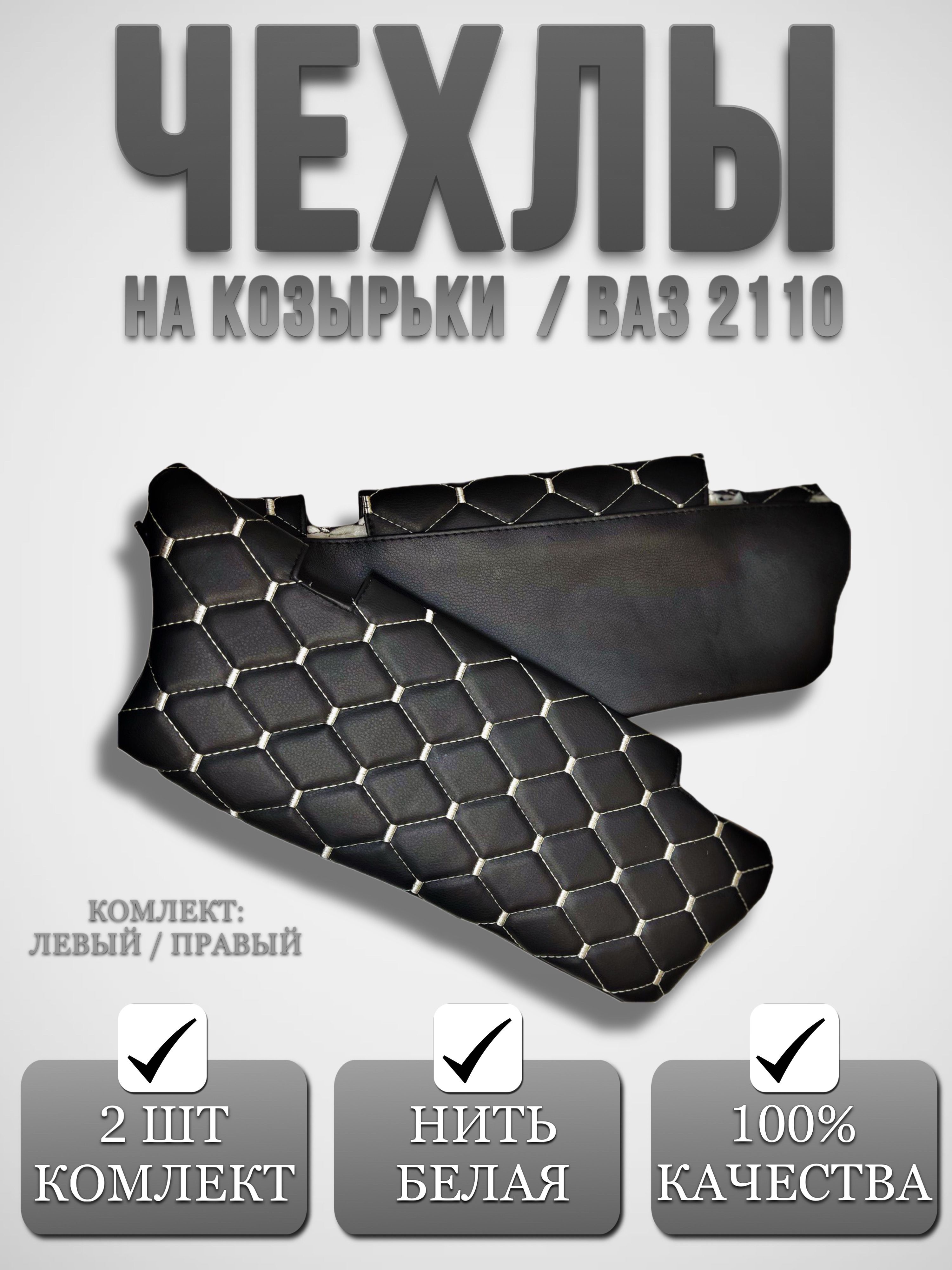 Чехлы на козырьки ВАЗ 2110, 2111, 2112 (белая нить) от СимКомфорт - это не только стильный аксессуар, но и практичный выбор для тех, кто ценит комфорт и качество.