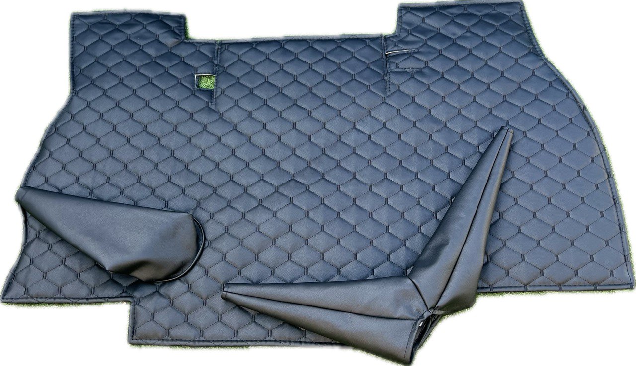 Коврик под рычаги КПП УАЗ 452, 3303 (чёрная нить Рубин) - это идеальное решение для тех, кто хочет защитить свой автомобиль от грязи и пыли. Этот коврик изготовлен из экокожи, поролона и войлока, что обеспечивает высокую степень комфорта при езде.