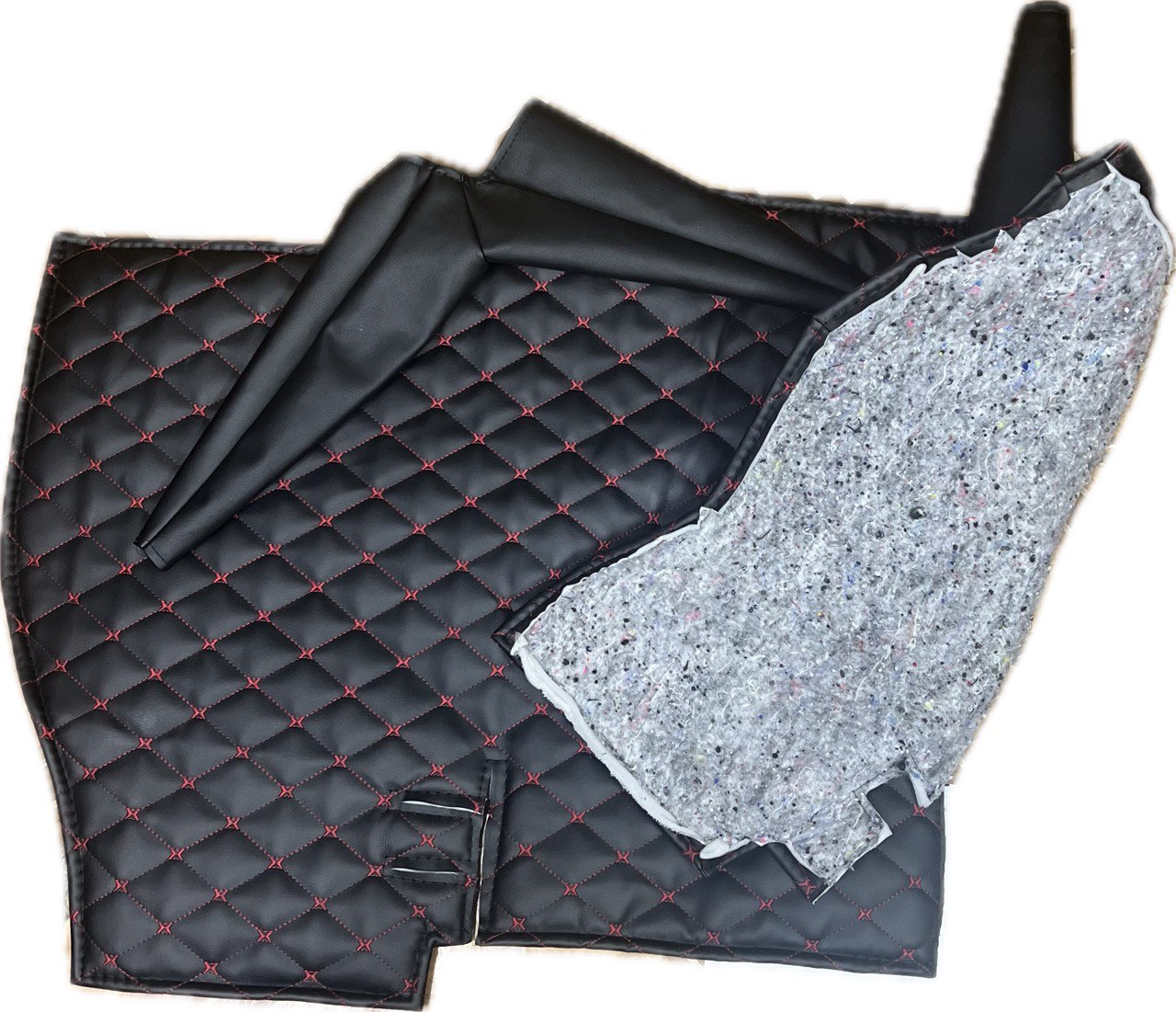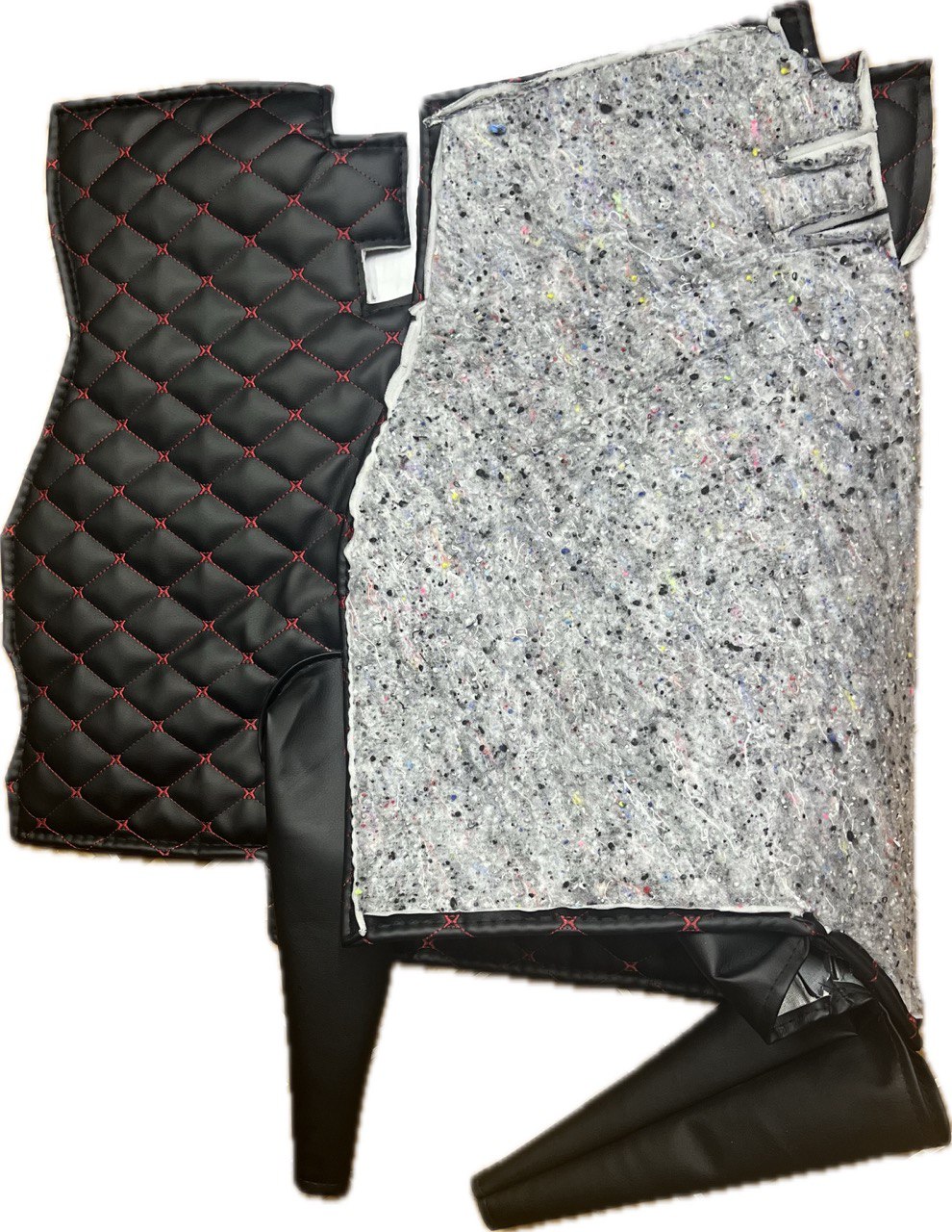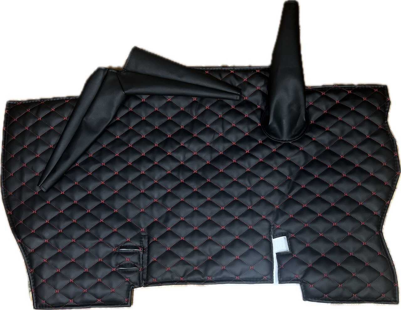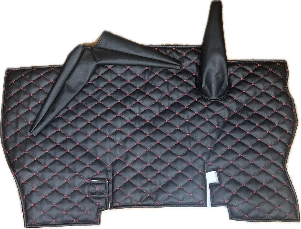 Коврик под рычаги КПП УАЗ 452, 3303 (красная нить Бабочка) - это идеальное решение для тех, кто хочет защитить свой автомобиль от грязи и пыли. Этот коврик изготовлен из экокожи, поролона и войлока, что обеспечивает высокую степень комфорта при езде.