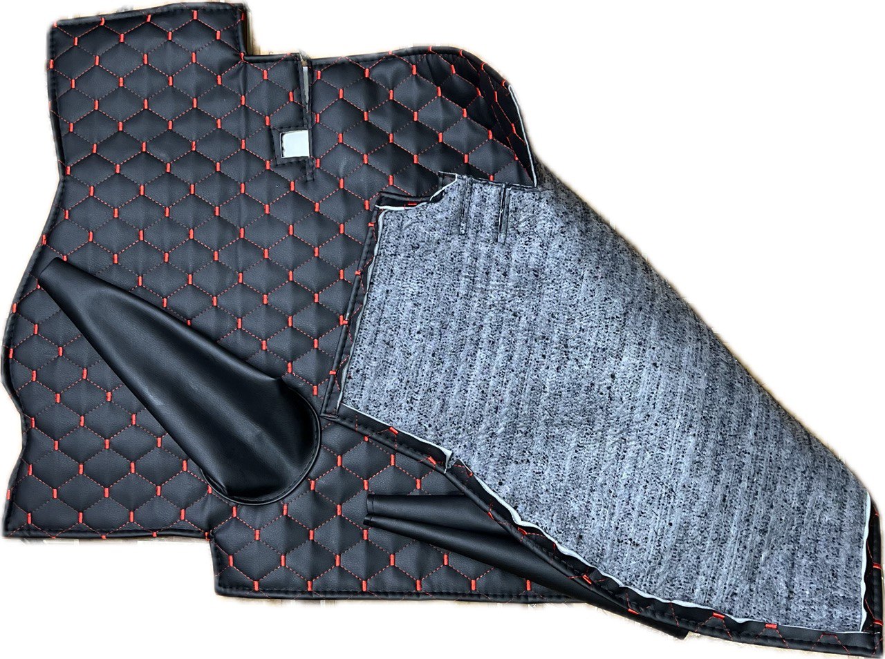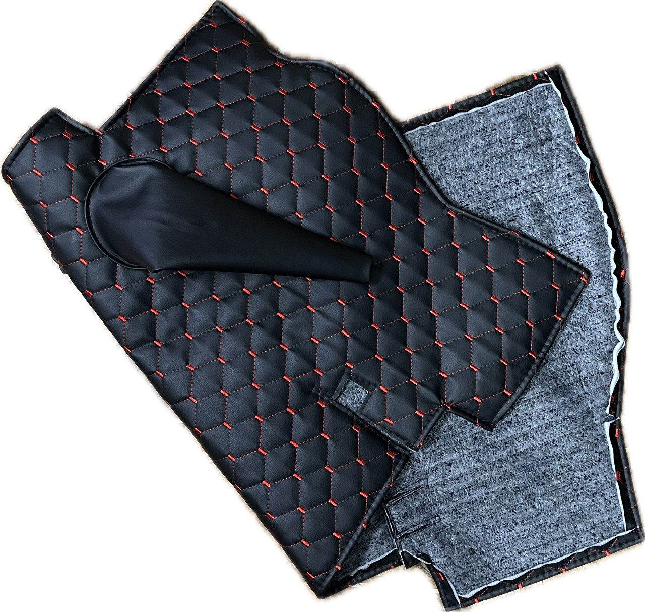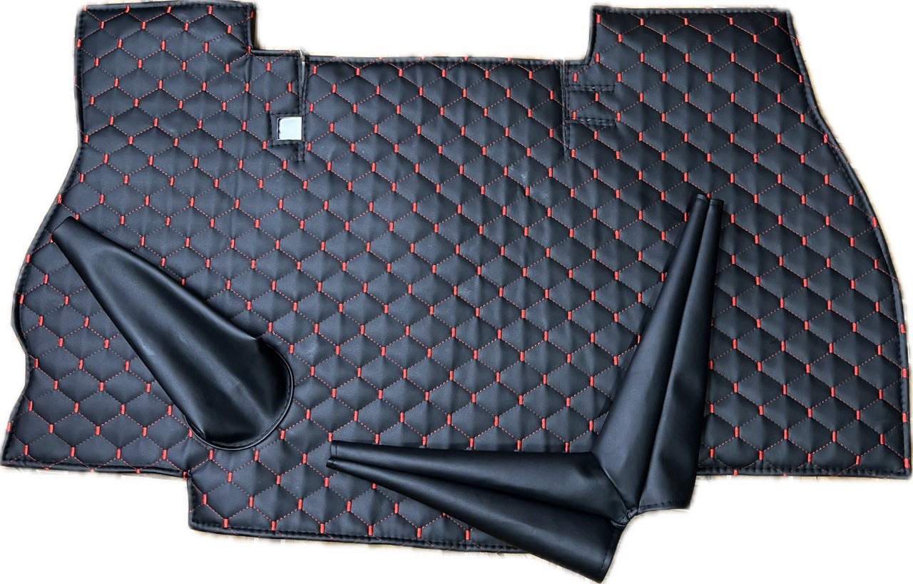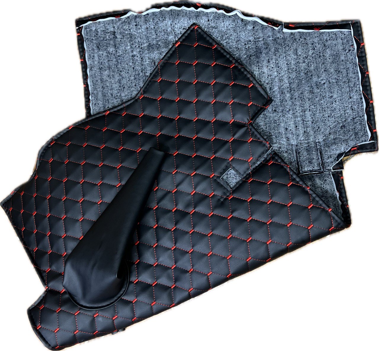 Коврик под рычаги КПП УАЗ 452, 3303 (красная нить Рубин) - это идеальное решение для тех, кто хочет защитить свой автомобиль от грязи и пыли. Этот коврик изготовлен из экокожи, поролона и войлока, что обеспечивает высокую степень комфорта при езде.