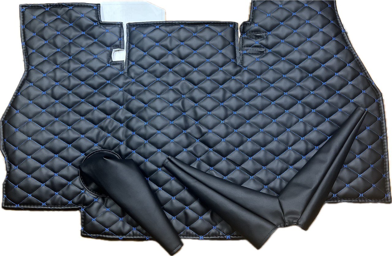Коврик под рычаги КПП УАЗ 452, 3303 (синяя нить Бабочка) - это идеальное решение для тех, кто хочет защитить свой автомобиль от грязи и пыли. Этот коврик изготовлен из экокожи, поролона и войлока, что обеспечивает высокую степень комфорта при езде.