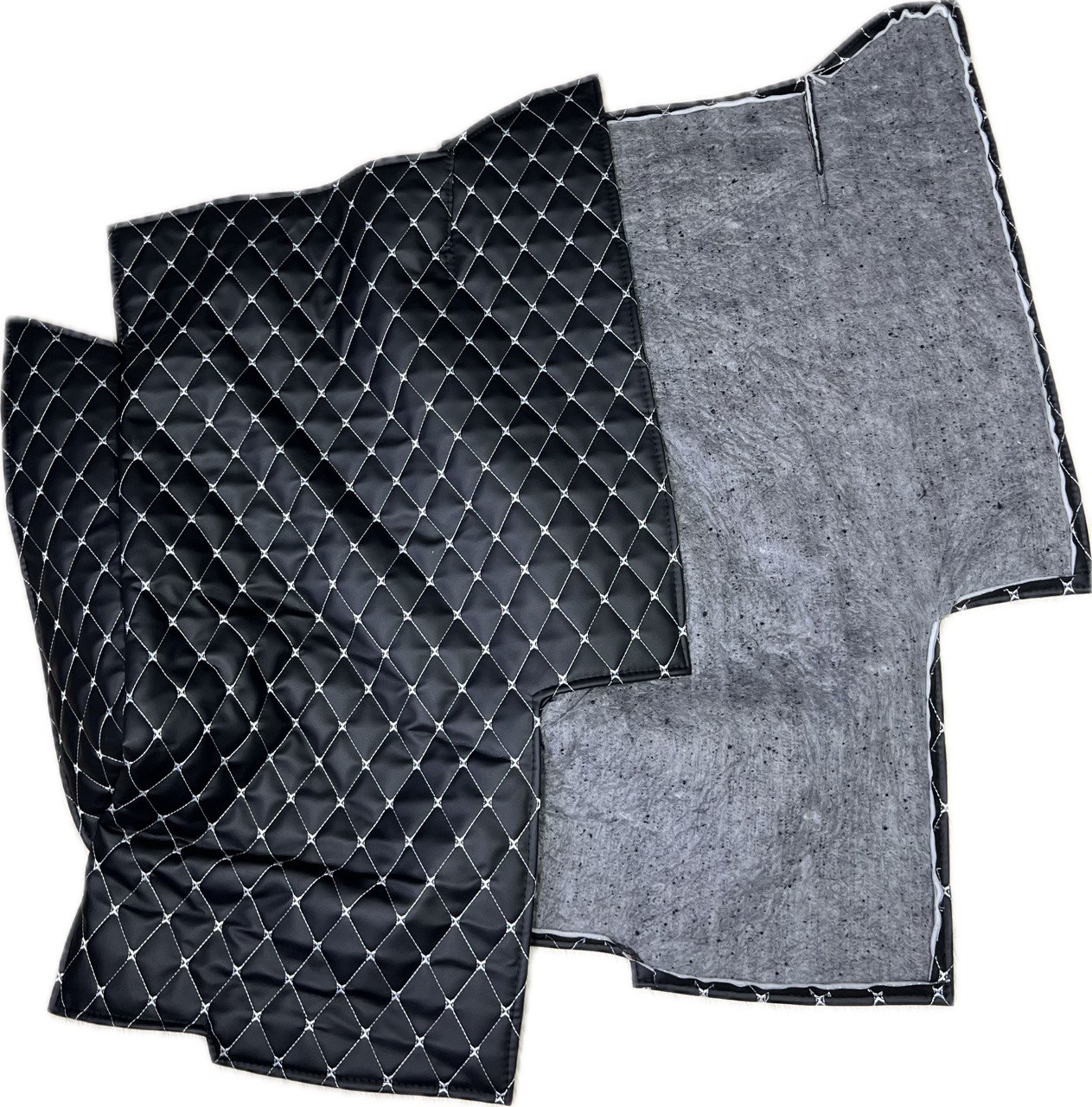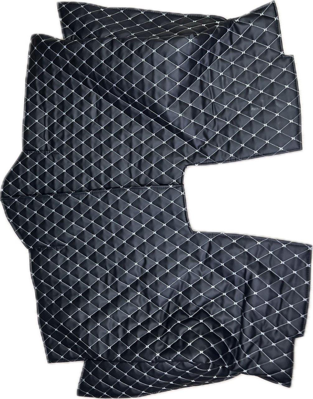 Отличный выбор для владельцев внедорожников и коммерческих автомобилей. Изготовлены из прочной экокожи, мягкого поролона и плотного войлока — обеспечивают комфорт при длительных поездках и защиту обивки от загрязнений. Чёрный цвет с рельефным ромбовым узором гармонично впишется в любой интерьер салона.