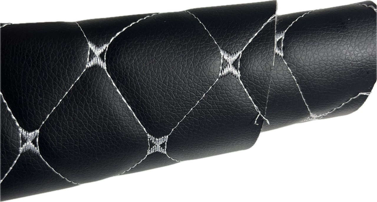Стеганая чёрная экокожа на поролоне 3 мм. со спанбондом (белая нить Бабочка) 140см. х 100 см - это идеальное решение для тех, кто хочет обновить интерьер своего автомобиля. Эта обивка сделана из высококачественной экокожи, которая отличается своей прочностью и долговечностью. Она также имеет уникальную текстуру, которая придает ей особый шарм и стиль.